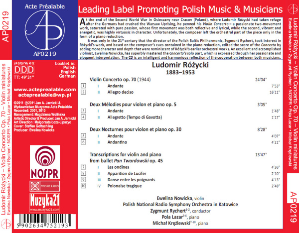 Am 30.01.2012 ist eine schöne Kritik von meiner ersten CD mit dem Ludomir Rozycki Violinkonzert bei Klassik.com erschienen. Hier können Sie die Rezension lesen
