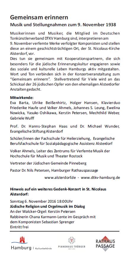 Zur "Woche des Gedenkens" spielt die GEDOK Musik und Texte aus drei Jahrhunderten.