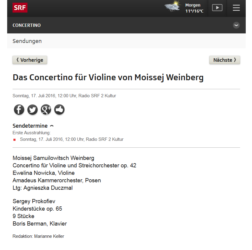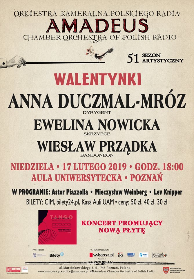 Dieses Jahr wurde ich eingeladen das Concertino op. 42 und die Rhapsodie über moldawische Themen op. 47 von Mieczyslaw Weinberg mit dem Kammerorchester des Polnischen Rundfunks "Amadeus" unter Leitung von Agnieszka Duczmal zu spielen.