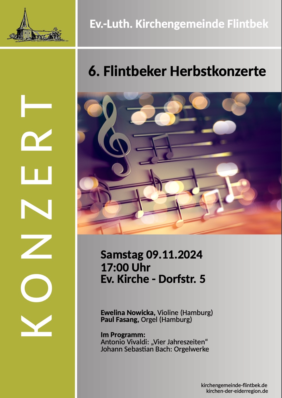 Am 09.11.24 werde ich im Rahmen der Flintbeker Herbstkonzerte zusammen mit Paul Fasang „Vier Jahreszeiten“ von Antonio Vivaldi spielen.