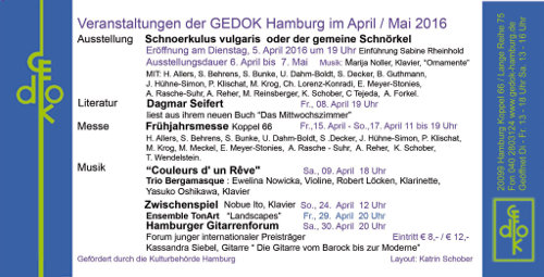 Von 102 Musikern wurden 24 Ensembles ausgewählt, die das Programm im zwei Runden präsentieren werden. Nach dem Wettbewerb haben die Musiker Gelegenheit am Meisterkurs teilzunehmen. Vom 18.07. bis 04.09.2010 findet im Kunstforum der Gedok Hamburg die Austellung von Sibylle Möller statt.
